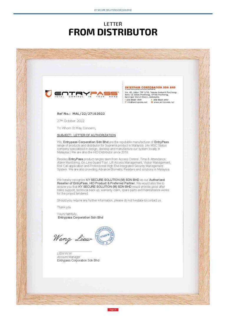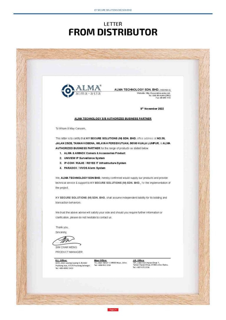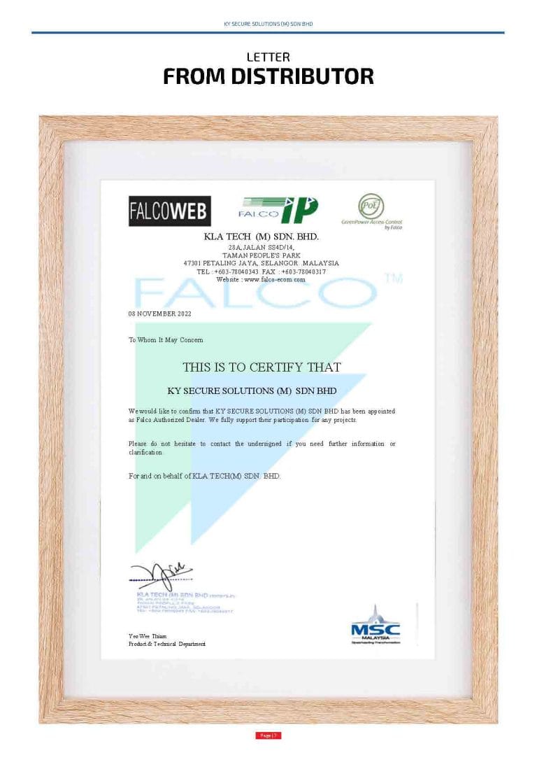 In KY Secure Solutions (M) Sdn. Bhd., we are the authorized dealer and installer for Mag, Soya, Entrypass, Falco, Bosch, Micro Engine, SUPA, Paradox, bluguard, HIKVision, Dahua, UNV, Cynics, Uniarch, HP, IPCom, Ruijie, DEA, LPS and GForce. Almost all products distributed originate from reputable and trusted security system manufacturers that are recognized as market leaders in the field.